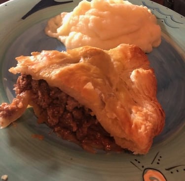 Roll out a puff pastry and place it over the filling, crimping the edges to seal.