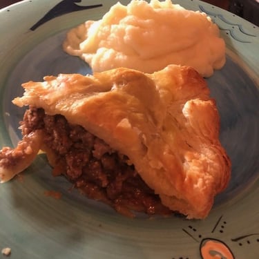 Roll out a puff pastry and fit it into a 9-inch deep pie dish.